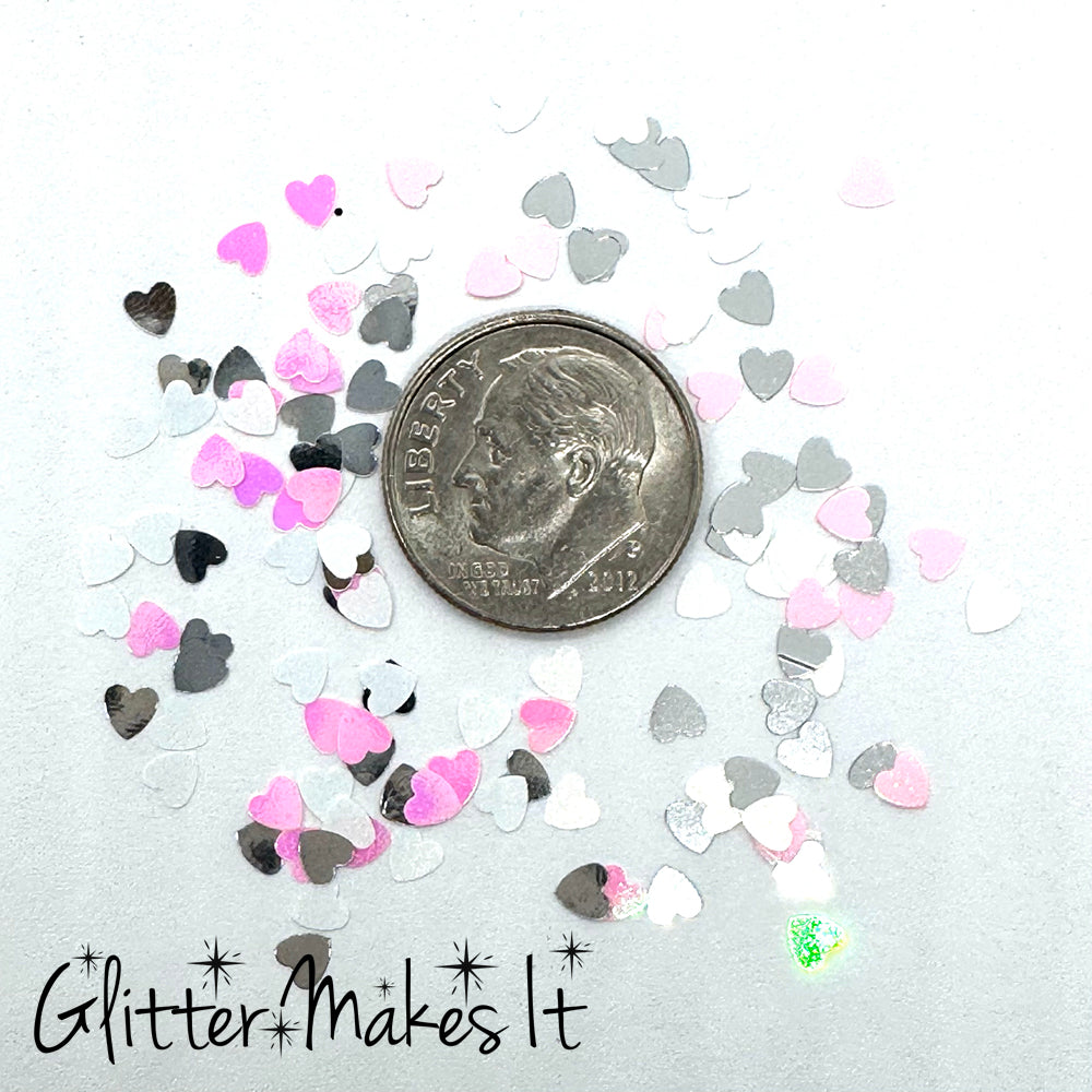 Cross my heart and hope you love these sparkly silver and pink hearts!